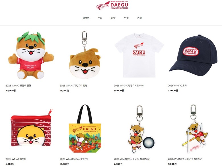 ▸ KC인증, 해외배송 서비스, A/S 지원 등 맞춤형 서비스로 상품 만족도 제고 [대구 세계타임즈=한윤석 기자] 2026대구세계마스터즈육상경기대회 조직위원회(이하 ‘조직위원회’)는 대회 분위기 붐업을 위해 마스코트 등 상징물을 활용한 공식 상품을 개발하고, 1월 5일부터 본격적인 판매에 나선다.