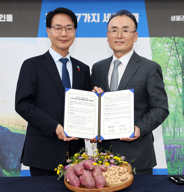 | ▲ 왼쪽부터 심덕섭 고창군수, 권익범 엠즈씨드 대표 |
