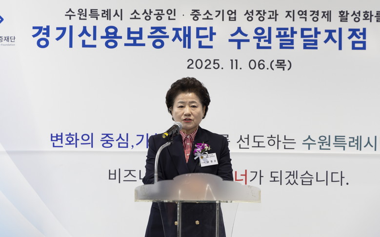 [경기도 세계타임즈=송민수 기자] 경기도의회 남경순 의원(국민의힘, 수원1)은 11월 6일(목) 오전 11시, 경기신용보증재단 수원팔달지점 이전식에 참석해 지역 소상공인과 중소기업의 금융 접근성 향상과 지역경제 활력 회복을 위한 기대를 전했다.