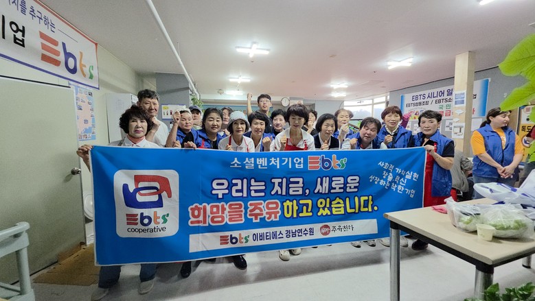 [세계타임즈]최성룡기자 =이비티에스협동조합 마산창원센타(센타장 이수진) 경남연수원지국은 지난10월4일 국민밥상무료급식소를 찾아 어르신들과 장애우들에게 맛있는 식사와 선물까지 전달하였다