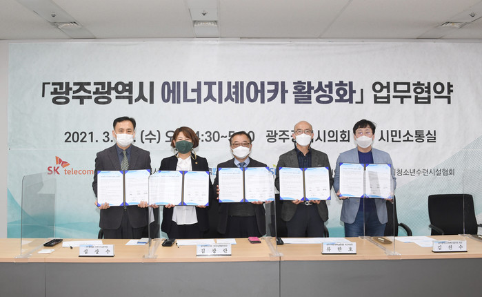 협약식에는 광주광역시 그린뉴딜특별위원회, SK텔레콤(서부인프라본부), 광주지역문제해결플랫폼, 광주사회복지협의회, 광주청소년수련시설협회가 참여하였다.