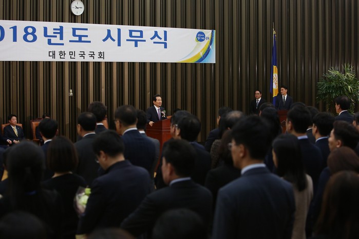 [세계타임즈 이채봉 기자]정세균 국회의장은 2일 오전 국회 본청 대강당에서 열린 ‘2018년 국회 시무식’을 가졌다.