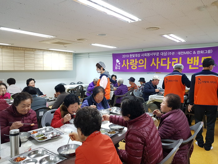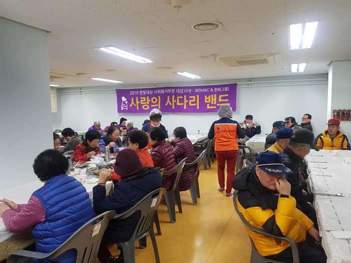 [대전=세계타임즈 이채봉 기자] 다양한 봉사를 꾸준히 하고 있는 대전시 SNS 봉사단체 사랑의 사다리 밴드(리더 이정제)는 지난30일 오전11시, 대동종합사회복지관(관장 김현채)에서 150명의 어르신들 점심시간에 가장동 한민시장내 “왔다 떡방(대표 장순애)의 떡국떡 후원으로 사골떡국, 묵무침, 부침개 봉사로 사회적 효행을 실천 하였다.