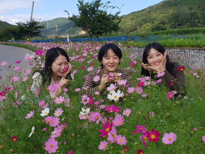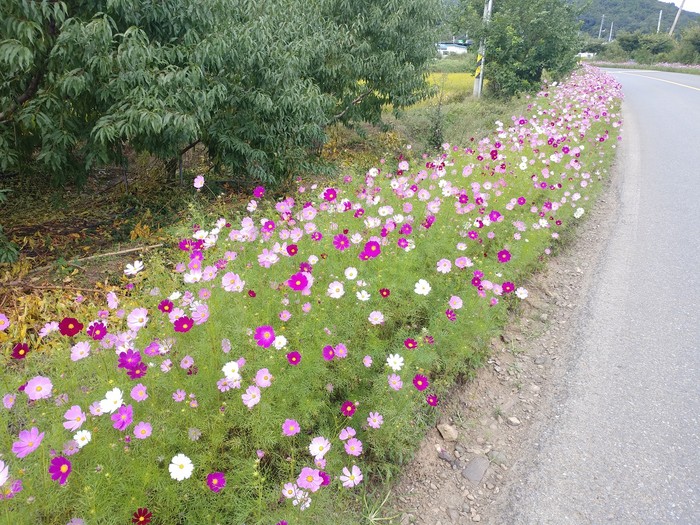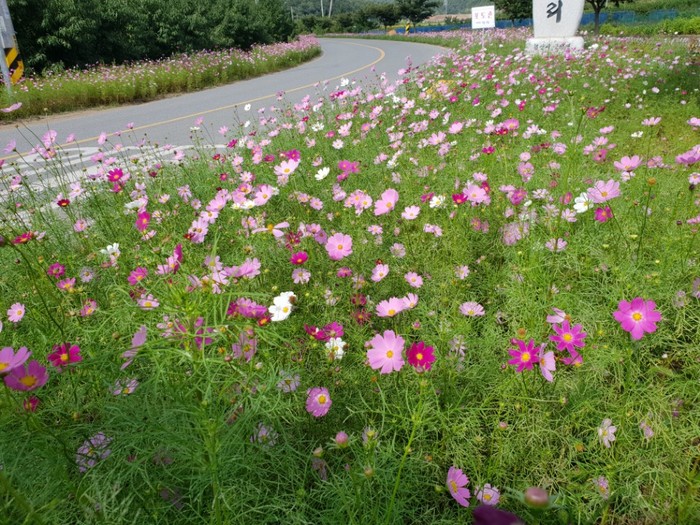 이번에 조성된 코스모스 꽃길은 폭염이 계속된 여름내 지역 주민들과 면사무소 직원들이 구슬땀을 흘리며 가꾼 것으로 성큼 다가온 가을과 함께 만개하여 지역의 새로운 명소로 자리 잡았다.