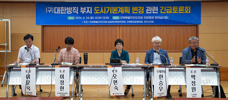 [전북특별자치도의=세계타임즈 이상호 기자] 전북특별자치도의회 오현숙 의원(정의당,비례)은 24일(화) ‘(구)대한방직 부지 도시기본계획 변경’을 주제로 긴급 토론회를 가졌다.