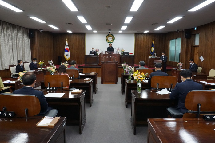 김기하 의장은 개회사를 통하여 “내실있는 현안사업 추진으로 신성장 동력사업을 완성하여 일자리와 소득이 늘어나는 경제관광으로의 변화를 꾀하고 지역경제 회복과 도약의 기반을 마련해야한다.”고 촉구하며,