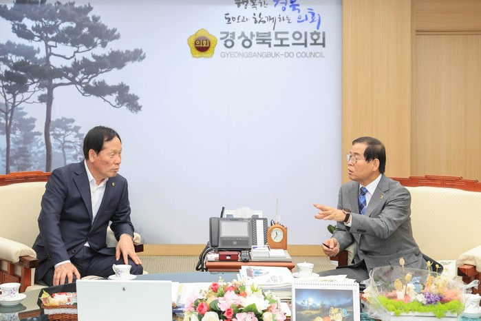 [대구=세계타임즈 한성국 기자] 대구광역시의회 장상수 의장이 10월 28일(수) 오전 11시 경상북도의회를 방문하여 고우현 의장을 만나 대구·경북의 주요 현안에 대한 상생발전 및 협력 방안을 논의했다.