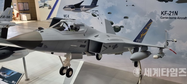 [KF-21 보라매를 기반으로 항공모함에서 운용될 수 있도록 개조된 KF-21N 함재기(사진=KAI)]
