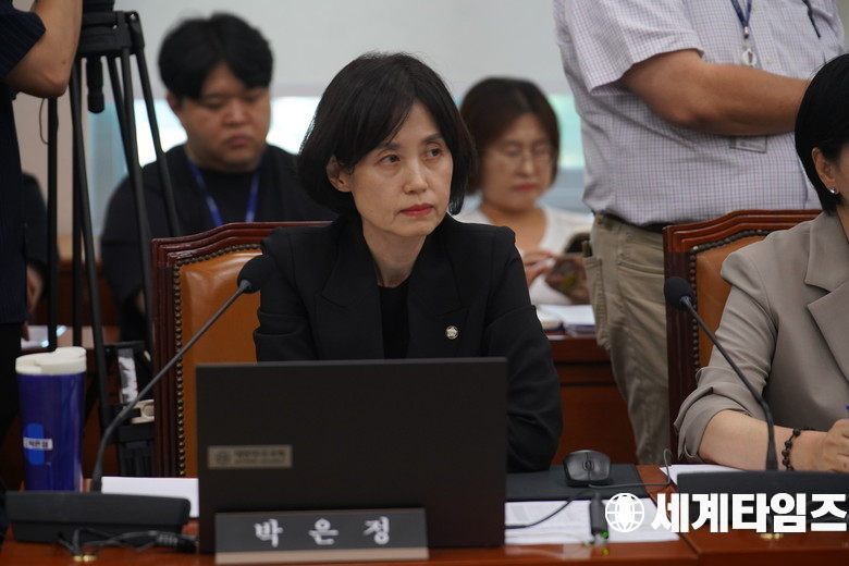 조국혁신당 '박은정' 의원이 10일 서울 여의도 국회에서 열린 법제사법위원회 전체회의에서 검찰개혁 입법청문회 관련 안건 처리 중 국민의힘 의원의 발언에 대해 항의하고 있다.