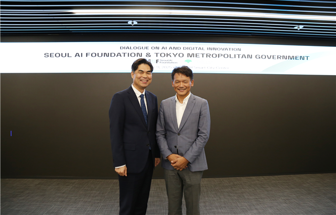 | ▲ 지난 9월 9일, 미야사카 마나부 도쿄도 부지사가 서울AI스마트시티센터에를 방문하여 간담회를 진행하였다. (좌)김만기 서울AI재단 이사장,(우)미야사카 마나부 도쿄도 부지사 |