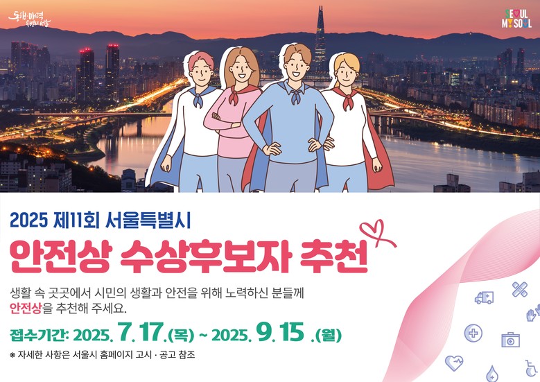 추천서류는 서울시 누리집(www.seoul.go.kr) → 서울소식 → 고시·공고 → ‘2025년 서울특별시 안전상 후보자 추천 공고’에서 내려받을 수 있다.