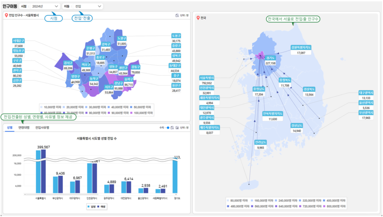 이번 서울시 인구이동 분석 결과는 ‘26년 1월 22일 서울열린데이터광장(data.seoul.go.kr)을 통해 공개되며, 2026년 6월에는 인구이동 자료(2001~2024년)를 한눈에 볼 수 있는 시각화 서비스도 공개할 예정이다.