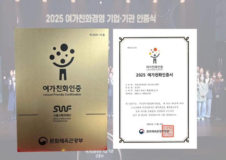 | ▲ 서울시복지재단 2025 여가친화인증서 |