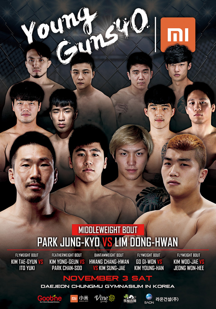 [세계타임즈 김인수기자] 오는 11월 3일 대전 충무체육관에서 열리는 XIAOMI ROAD FC YOUNG GUNS 40 출전 선수들이 공개됐다. 넘버 시리즈와 견줘도 손색없는 하나의 콘텐츠로 자리 잡아, 벌써 40번째를 맞이한 이번 대회에서는 ROAD FC(로드FC)에서 꾸준히 활약하고 있는 베테랑 선수들부터 데뷔전을 앞둔 파이터들까지 모두 모여 새로운 스타 탄생을 예고하고 있다.