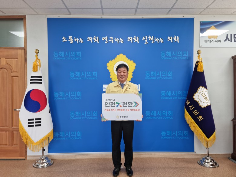 [동해시 세계타임즈=김민석 기자] 동해시의회(의장 이동호)는 가정 내 안전사고를 예방하고 안전점검 문화를 확산하고자 심규언 동해시장에 이어 ‘집중안전점검 기관장 릴레이 캠페인’의 두 번째 주자로 참여하였다.