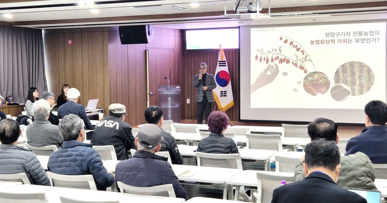 종합토론은 한국농어촌유산학회 오충현 부회장이 좌장을 맡아 진행했다. 청양군 최이호 농촌공동체과장, 한국농어촌공사 박윤호 청양지사장, 한국농어촌유산학회 백승석 이사, 지역계획연구소누리 구진혁 대표, 경북 의성군 이세엽 농업유산팀장 등이 지정토론자로 참여해 현장에 기반한 다양한 의견을 내놨다. 토론에서는 농업유산 기반 콘텐츠 개발, 청년·귀농귀촌 인력과 연계한 전통기술 전승, 지속가능한 경관 관리 모델 구축 등이 주요 과제로 제시됐다.