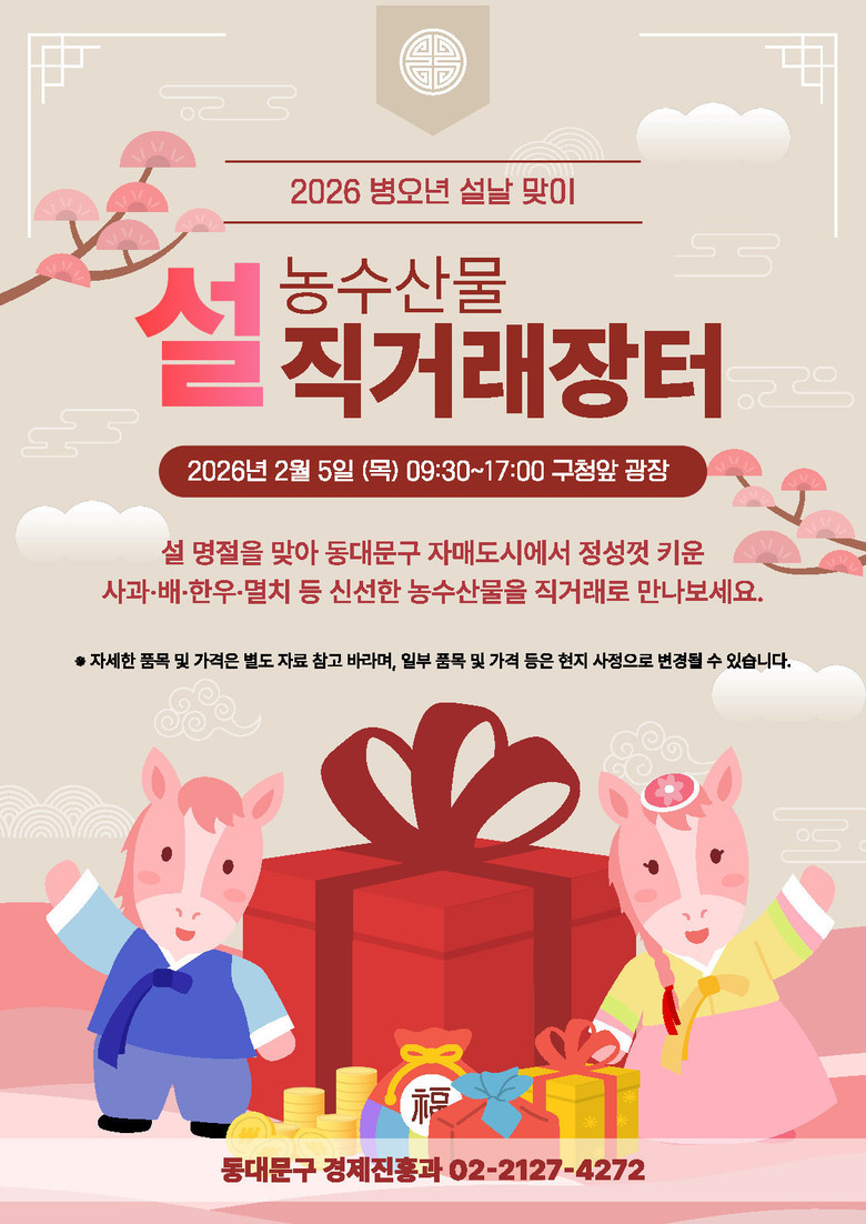 이필형 동대문구청장은 “직거래 장터는 20여 년간 쌓아온 자매도시 간 신뢰가 만들어낸 동대문구만의 상생 모델이다. 구민께는 안전하고 신선한 농수산물을 합리적인 가격에 제공하고, 농가에는 든든한 판로를 제공하는 의미 있는 장으로 자리매김했다”며 “작년에 새롭게 인연을 맺은 청도를 포함해 각 지역과의 교류를 더욱 확대하여 구민 생활 안정과 지역 농가 소득 증대에 실질적인 성과를 만들어 가겠다”고 밝혔다.