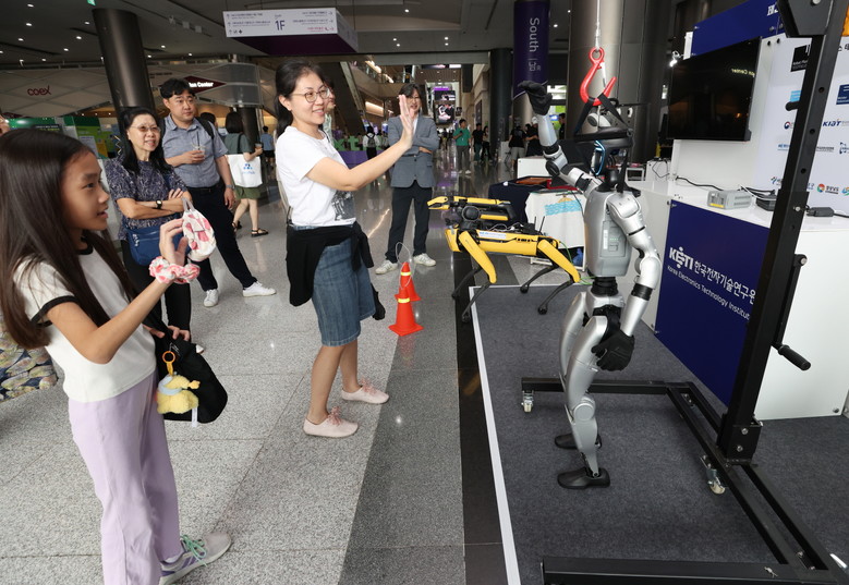 | ▲ 로봇플러스페스티벌에서 로봇과 인사하는 시민 |