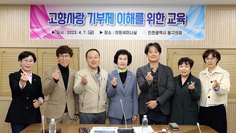 [동구 세계타임즈=심하린 기자] 인천 동구의회(의장 유옥분)는 지난 7일 의원세미나실에서 소속 의원과 의회사무과 직원을 대상으로 『고향사랑 기부제 이해를 위한 교육』을 실시했다.