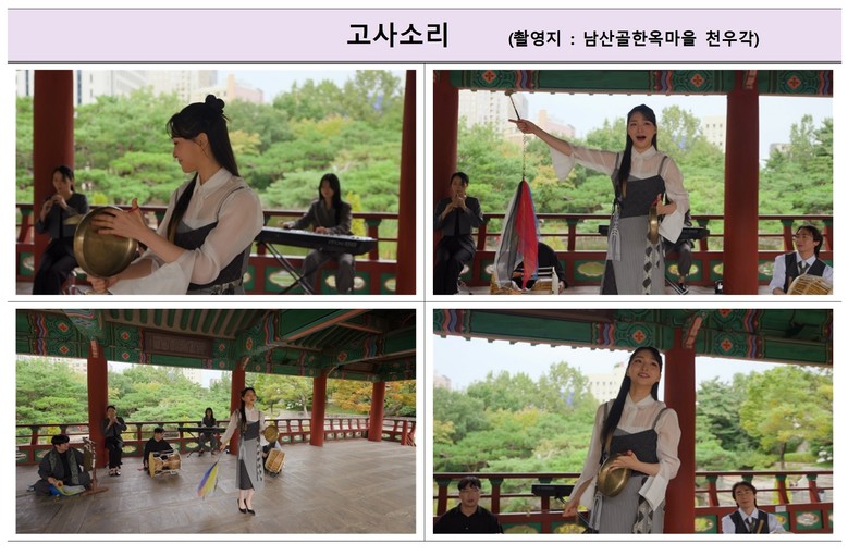 ‘고사소리’는 인간사의 액운을 막고 복을 비는 의식가로, 한 해 열두 달의 세시풍속을 통해 삶의 순환과 안녕을 노래한다. 북 리듬과 도시적 사운드를 결합해 화려하고 세련된 분위기로 재탄생시켰다.