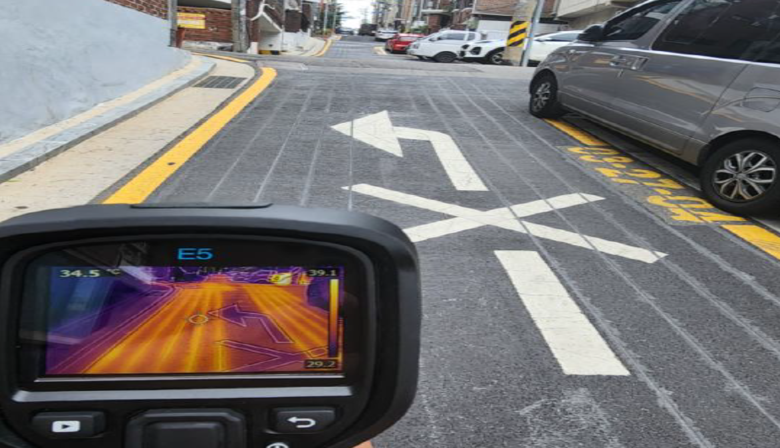 | ▲ 서울 금천구의 한 골목길에서 도로열선이 작동되고 있다 |