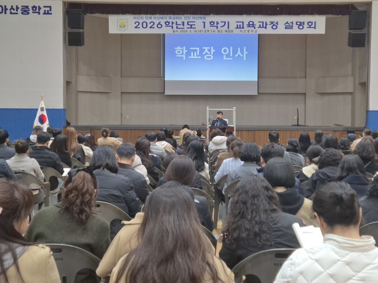 [아산시 세계타임즈=이현진 기자] 아산중학교(교장 강희준)는 지난 18일(수) 오후 7시 본교 태경관에서 ‘2026학년도 학교 교육과정 설명회 및 학부모 총회’를 성황리에 개최했다.