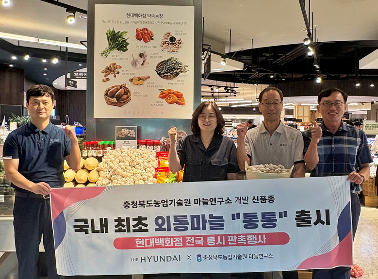 아울러 농업기술원에서 자체 개발한 신품종 마늘 ‘통통’도 현대백화점을 통해 국내에 처음 선보인다. ‘통통’은 기존 마늘과 달리 알밤처럼 한 덩어리 형태로 수확되는 외통 마늘 품종으로, 껍질이 잘 벗겨져 조리 편의성이 높고 당도가 높아 흑마늘 가공용으로도 적합하다.