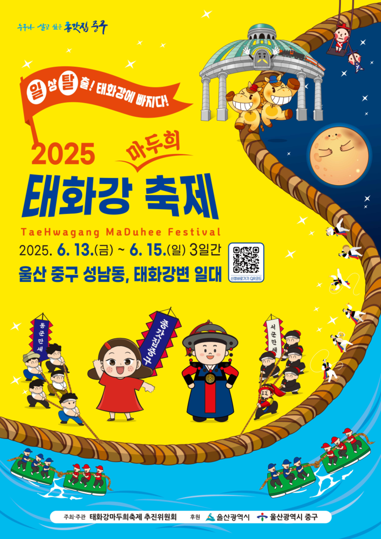 김영길 중구청장은 “태화강마두희축제는 울산의 역사와 공동체 정신을 되살리는 의미 있는 축제로 올해는 주민들이 직접 참여하고 즐길 수 있는 각종 프로그램을 더욱 풍성하게 마련했다”며 “지역 대표 여름 축제인 태화강마두희축제에 많은 관심과 참여를 부탁드린다”고 밝혔다.