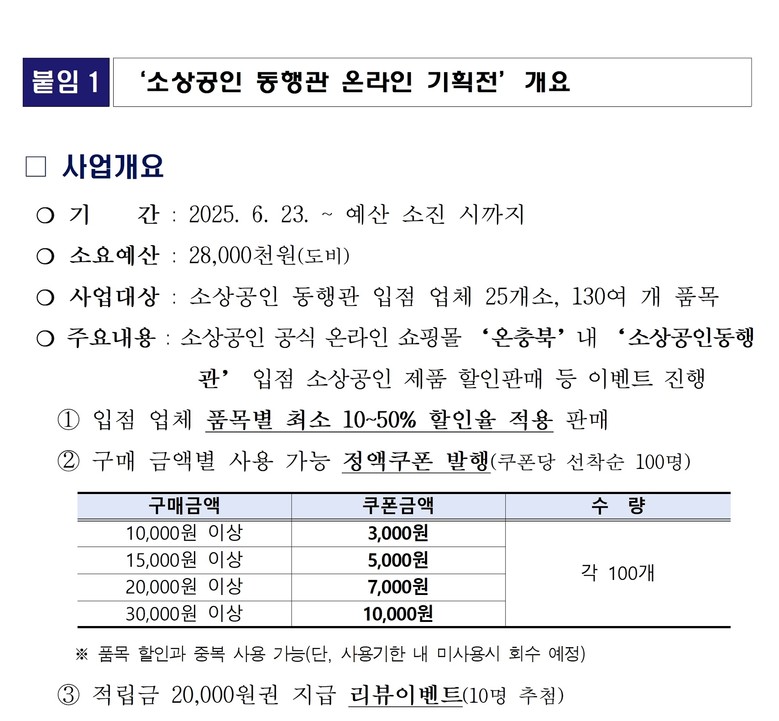 이번 기획전은 도내 소상공인의 우수 제품 소비를 촉진하고 소비자의 접근성을 높이기 위한 행사로 마련됐다. 특히, 동행관 입점업체 25개소의 약 130여 개 품목을 최대 50% 할인된 가격에 제공하며, 구매 금액대 별로 사용할 수 있는 할인쿠폰 및 참여형 리뷰이벤트도 함께 진행된다.