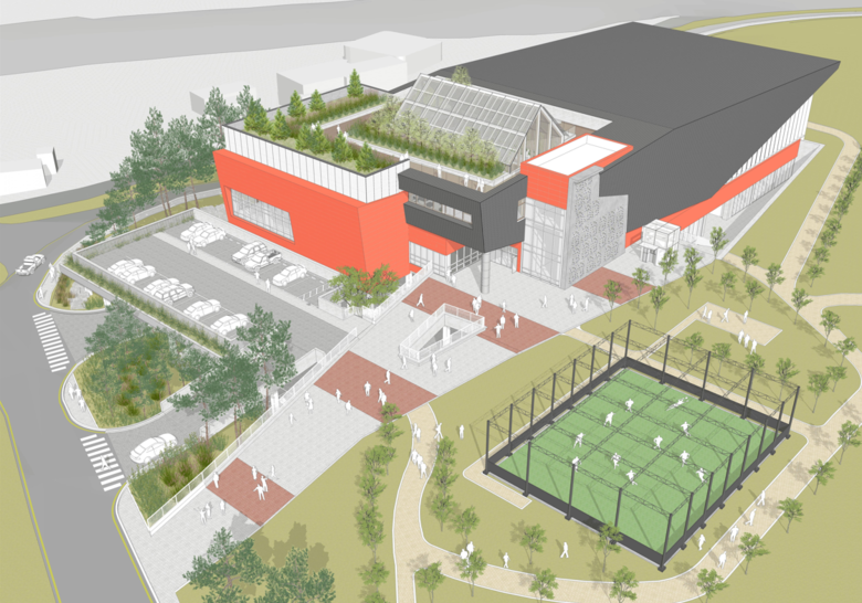 당선작인 ㈜에이텍종합건축사사무소의 설계는 지붕을 삼각형 형태의 천창으로 올려 내부에 넓고 개방적인 공간을 만드는 ‘박공형 아트리움’ 구조를 담았다. 이를 통해 자연광을 실내로 유입하여 체육관 전체 공간의 빛 환경을 개선한 친환경적인 계획이 높은 평가를 받았다. 또, 경제성 있고 간결한 동선의 주차장 조성계획도 심사위원들의 호평을 이끌어냈다.