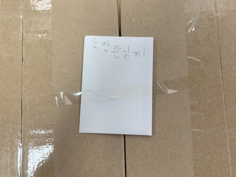 이어 지난 6일 북부소방서에 컵라면과 캔커피 등이 담긴 익명의 택배상자가 도착했다.