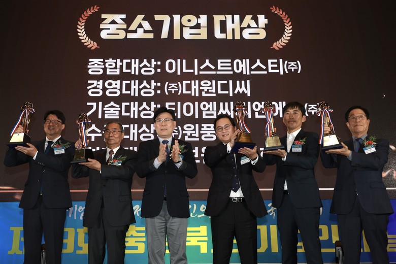 올해 중소기업대상 종합 1위에는 의약품 원료 제조업체 이니스트에스티㈜(대표 한쌍수, 음성‧청주)가 선정되었다.