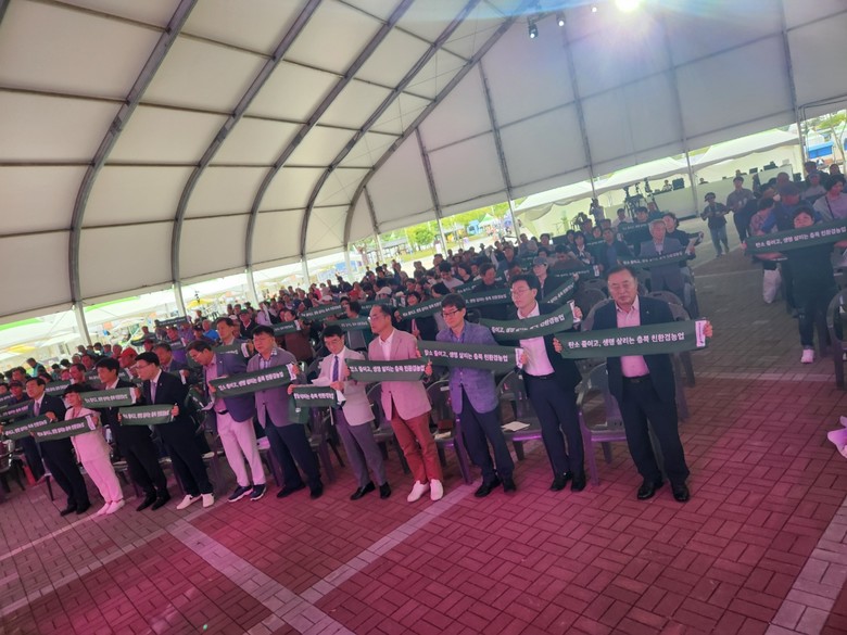 이동옥 충북도 행정부지사를 비롯한 11개 시군의 친환경농업인 600여 명이 참석하여 △탄소중립 실현 △친환경농업으로 환경 보전 △건강한 먹거리 제공 등 친환경농업 발전을 위한 결의를 다짐하고 친환경농업인 상호 간 화합을 다졌다.