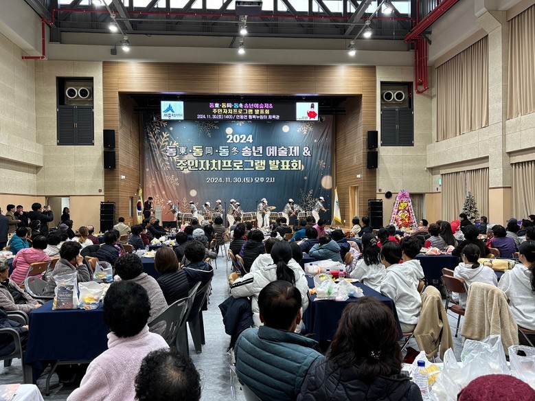 [세종 세계타임즈=이채봉 기자] 세종특별자치 연동면(면장 박종우)이 지난달 30일 연동면 행복누림터(복합커뮤니티센터)에서 주민 300여 명이 참여한 가운데 ‘동동동(東同冬) 송년 예술제’를 개최했다.