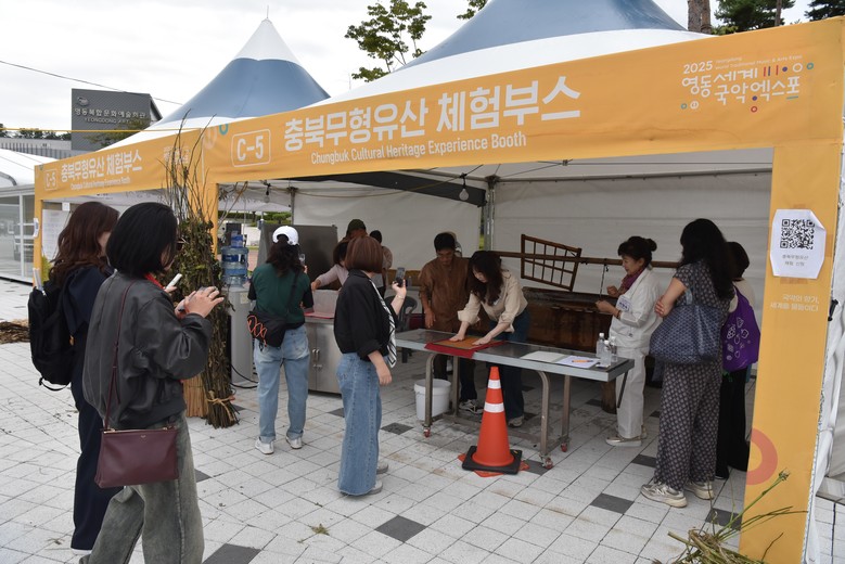 한편, 2025 영동세계국악엑스포는 “국악의 향기, 세계를 물들이다”라는 주제로 지난 9월 12일부터 오는 10월 11일까지 영동군 레인보우힐링관광지 및 국악체험촌 일원에서 열리며, 무형유산 체험관을 비롯한 다양한 공연 및 체험 프로그램을 운영하고 있다.