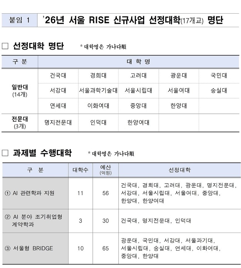 - 시, “서울 RISE 통해 대학의 AI·이공계 역량을 산업현장