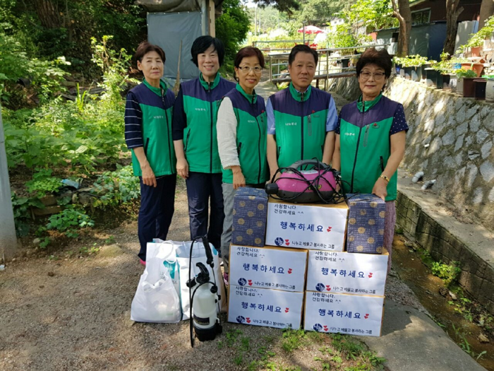 [세계타임즈 심귀영 기자]나눔의 기쁨을 행동으로 폭염 속, ‘나누고 베풀고 봉사하는 그룹’ 삼계탕 과일 드시고 건강한 여름 보내세요 나누고 베풀고 봉사하는 그룹은 정릉3동 1통 5통 100세 "어르신' 다문화 가족'에 사의"삼계탕, 과일,전자 모기 퇴치기"를 전달하고 어려운 어르신들의 건강 보호는 물론 청결하고 쾌적한 환경 조성 위해 “특히 더위 여름철 기승을 부리는 모기와 같은 해충방제를 위하여 소독 청소와 함께 나눔의 봉사활동을 실시했다 .