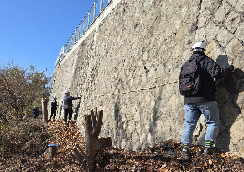 점검 대상은 학교 내·외부에 위치한 옹벽 및 석축 등 주요 시설 2개소이며, 정밀안전점검 절차에 따라 ▲현장 육안조사 ▲균열·변형 등 구조부재 이상 여부 진단 ▲기초 침하 및 구조 안정성 검토 ▲설계 도서·유지관리 자료 분석 ▲계측기기를 활용한 구조적 변위 측정 ▲법적 안전기준 준수 여부 확인 등을 진행한다. 일반 점검보다 한층 심층적이고 과학적인 방식으로 위험요인을 탐지·평가한다는 점이 특징이다.
