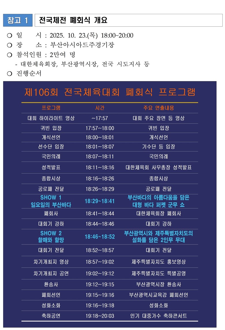 부산시, 오는 23일 「제106회 전국체육대회」 폐회… '뱅기뜬다, 날자!' 감동의 피날레