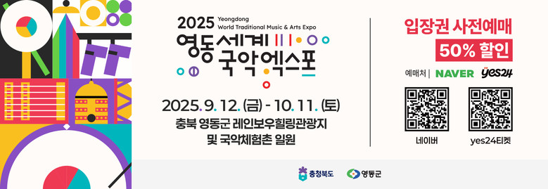 2025영동세계국악엑스포는 ‘국악의 향기, 세계를 물들이다’라는 주제로 세계 30개국이 참가하는 국제행사로 오는 9월 12일부터 10월 11일까지 한 달간 충북 영동에서 개최된다.