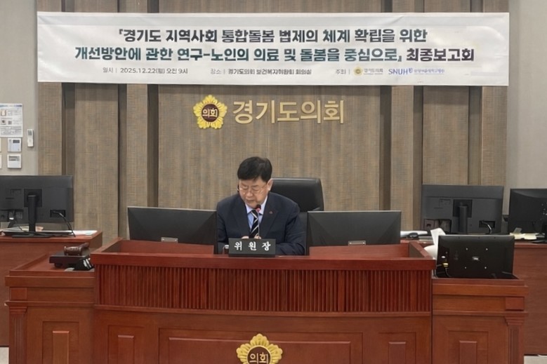[경기도 세계타임즈=송민수 기자] 경기도의회 보건복지위원회 연구단체인 보건복지연구회(회장 이선구 위원장, 더불어민주당, 부천2)는 12월 22일, 「경기도 지역사회 통합돌봄 체계 확립을 위한 개선방안에 관한 연구」를 주제로 연구용역 최종보고회를 개최했다.