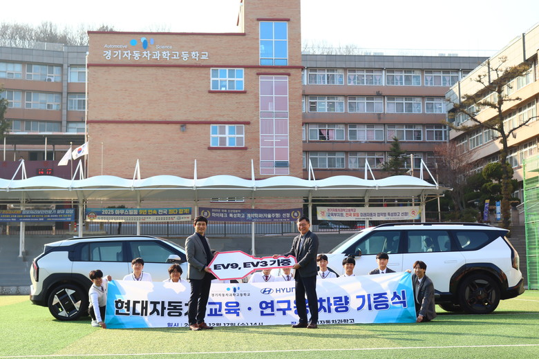 [시흥시 세계타임즈=송민수 기자] 2025년 12월 17일 – 국내 유일의 미래 모빌리티 분야 '2025 교육부 지정 협약형 특성화고등학교'인 경기자동차과학고등학교(교장 김임식)가 현대·기아자동차 그룹으로부터 최신형 전기자동차를 기증받으며 명실상부한 미래 기술 인재 양성의 요람임을 입증했다.