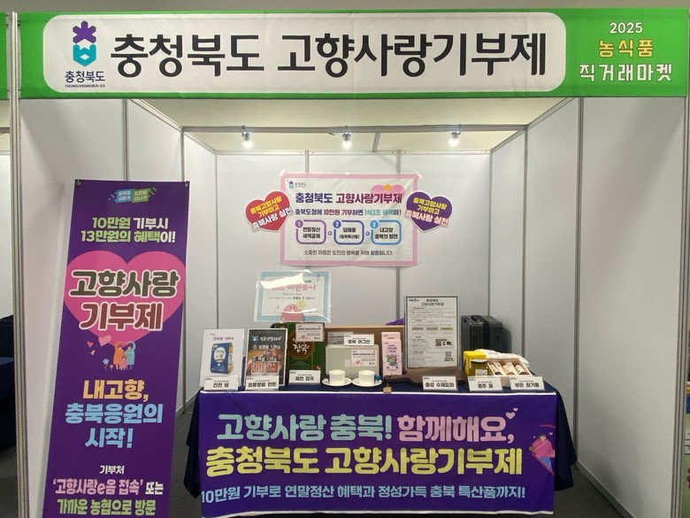 이번 박람회에는 충북도와 도내 6개 시·군(청주, 충주, 제천, 보은, 옥천, 영동)이 충북 농협의 협조를 받아 고향사랑기부제 활성화를 위한 상호 협력 차원에서 공동으로 참여해 홍보 성과를 거두고 있다.
