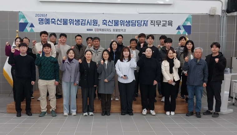 [강원도 세계타임즈=김민석 기자] 강원특별자치도는 3월 26일(목) 강릉시 사천면 반려동물지원센터에서 도내 명예축산물위생감시원(이하 명예감시원)과 시군 축산물 위생 담당 공무원을 대상으로 ‘2026년 상반기 직무교육’을 실시했다.