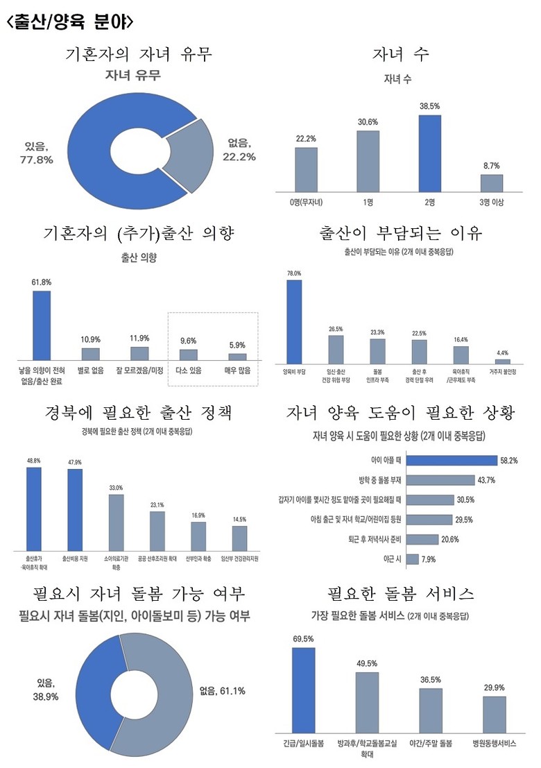 저출생 정책평가센터는 도민 1,562명을 대상으로 인식조사를 실시하고 전문가 자문을 통해 저출생의 정책 성과와 현장 수요에 대해 분석했다.