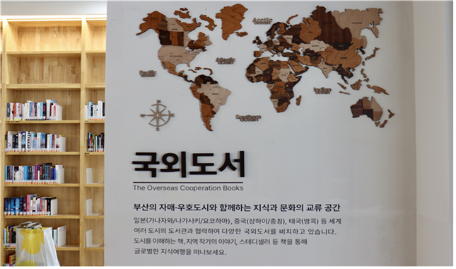 부산도서관은 2014년부터 교류 협력사업을 실시하여, 현재 11개국 16개 도시와 활발히 소통 중이며, 이 과정에서 도서 20,546권을 기증하여 부산을 홍보하고, 한국의 우수도서를 알리고 있다.