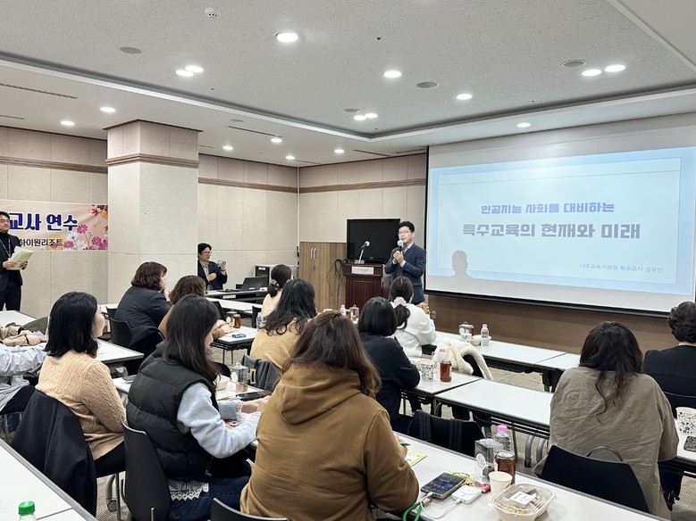 오전에는 학부모를 대상으로 인공지능 시대를 대비한 특수교육의 방향을, 오후에는 특수교사를 대상으로 인공지능(AI) 기반 개별화교육프로그램 작성법을 주제로 실질적인 내용 중심의 연수가 진행되었다.