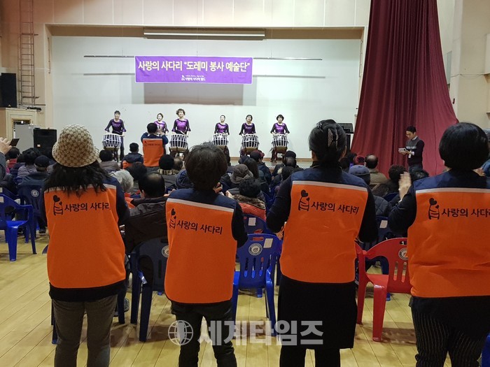 [대전=세계타임즈 이장성 기자] 6천명 봉사단체인 사랑의 사다리 밴드(리더 이정제)의 도레미 봉사예술단(단장 안경헌)은 20일 오전 10시30분에 동구 용운종합복지관(관장 강태인)에서 지역 어르신 150분을 모시고 위문공연 봉사로 사회적 효행을 실천하였다.