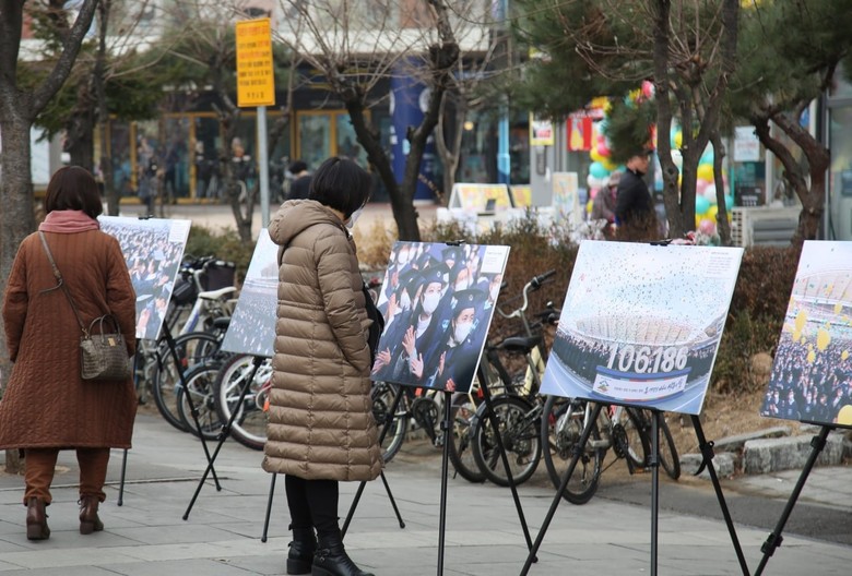 [세계타임즈 = 백진욱 기자] 신천지예수교 증거장막성전 바돌로매지파 부천교회(신천지예수교회 부천교회)가 지난 7일부터 10일간 ‘106.186명이 수료한 역사적 현장의 그날’ 이라는 주제로 시온기독교선교센터 113기 10만 수료식 야외 사진전을 상동역 1번 출구 일대에서 진행했다고 2월 20일 밝혔다.