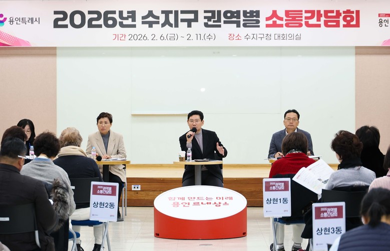 [용인시 세계타임즈=송민수 기자] 이상일 시장은 9일 수지구청 대회의실에서 오전·오후로 나눠 상현1·2·3동과 신봉·성복동 주민들을 대상으로 권역별 소통간담회를 열고, 주민 대표 80여 명과 지역 현안에 대해 의견을 나눴다.
